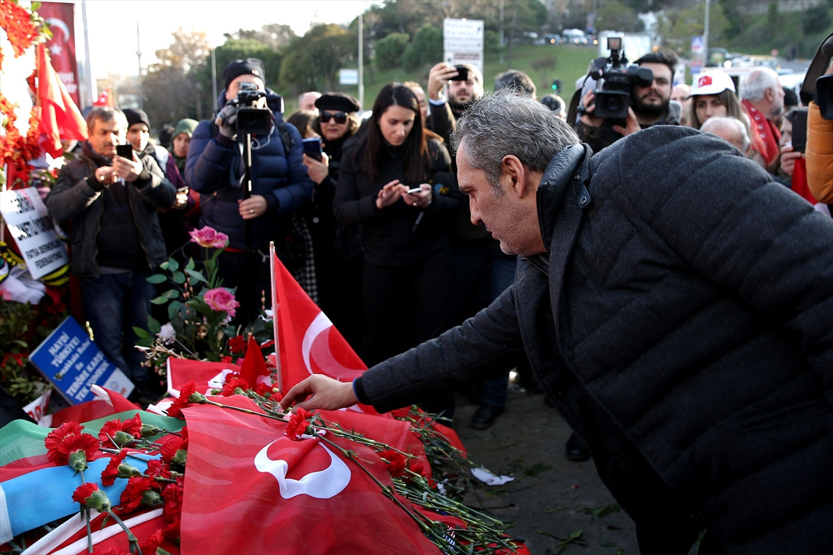 İSTANBUL (AA) - Muazzez Ersoy, İzzet Yıldızhan, Yavuz Bingöl, Metin Şentürk, Deniz Akkaya, Burak Kut ve Sinan Özen'in aralarında bulunduğu bir grup sanatçı, bombalı saldırının yaşandığı Şehitler Tepesi'ne gelerek terörü lanetledi.