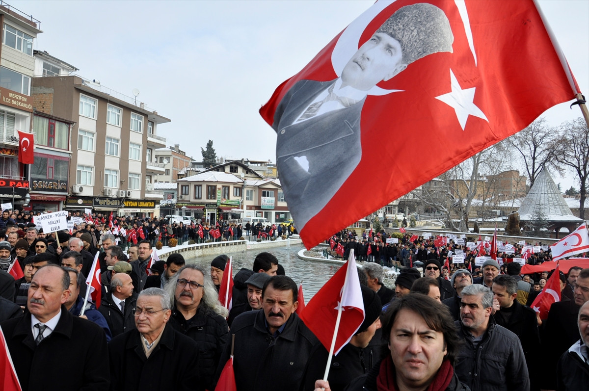 Grup adına açıklama yapan İnsani Değerler Platformu Sözcüsü Zeki Kanbur, kentteki toplumun bütün kesimlerini temsil eden mesleki ve sivil toplum kuruluşları olarak "Teröre karşı tek ses tek yürek" olmak için bir araya geldiklerini söyledi.