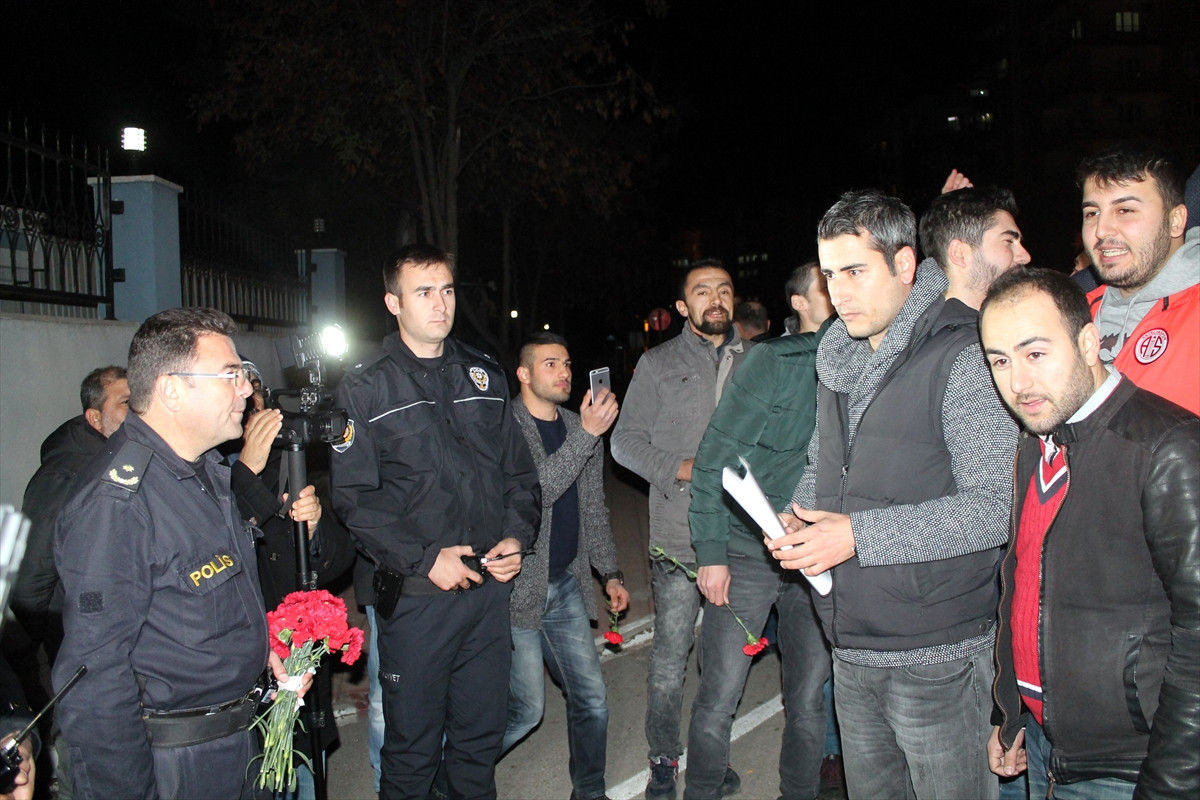 Burada bulunan Çevik Kuvvet Şube Müdür Yardımcısı Yunus Gez ile polis memurlarına karanfil veren ve taziyelerini ileten grup adına konuşan Berk Mutlu, Beşiktaş'ta bir spor müsabakası sonrasında çevik kuvvet polislerinin hedef alındığı terör saldırısını lanetlediklerini belirtti.