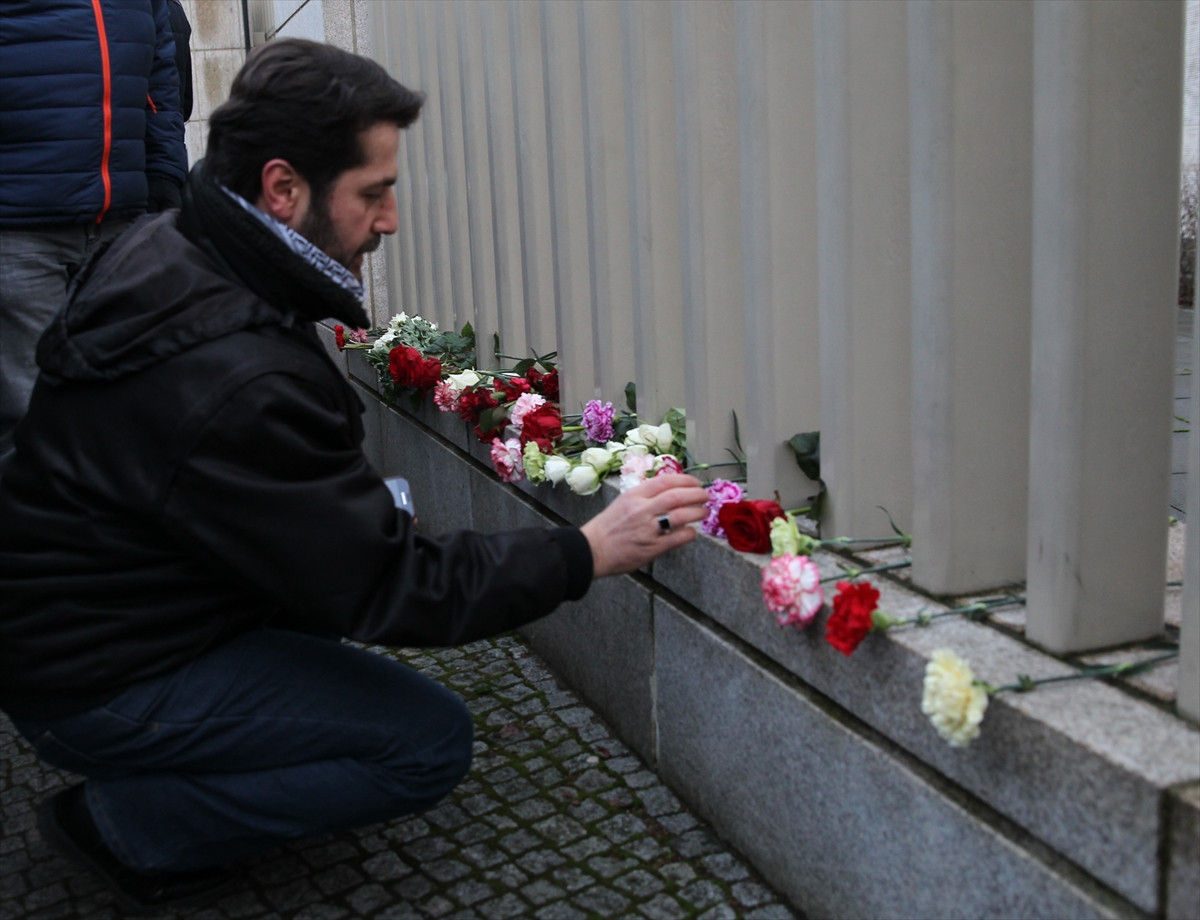 Dernek temsilcileri daha sonra Büyükelçilik önüne çiçek bıraktı.