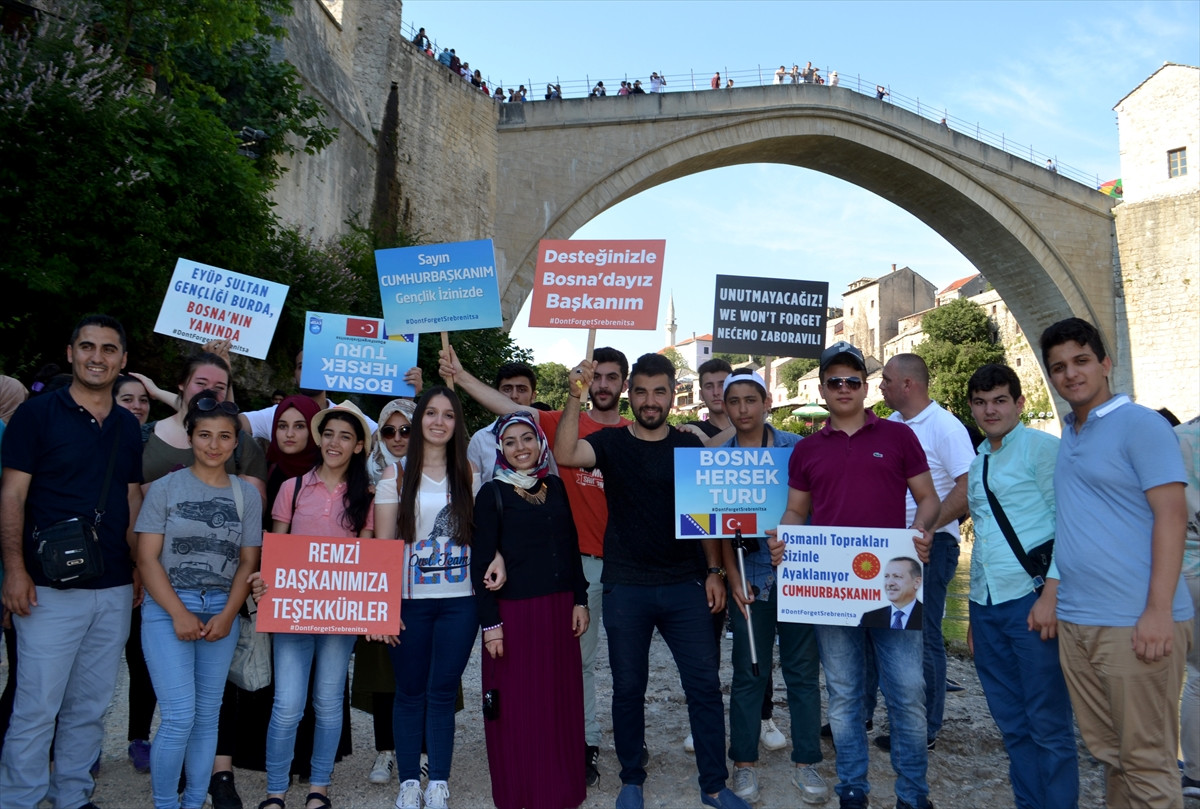 Köprü önünde bir araya gelerek, "Eyüp Sultan Gençliği burada Bosna'nın yanında", "Unutmayacağız", "Sayın Cumhurbaşkanım, Gençlik İzinizde", "Eyüp Belediye Başkanı Remzi Aydın'a teşekkür ederiz" yazılı pankart açan öğrenciler, köprünün tarihiyle ilgili de bilgi aldı.