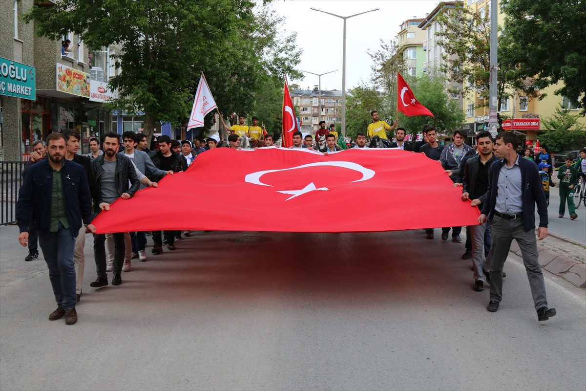 Vatandaşların oluşturduğu kortej, Sivas Belediyesi mehteran takımı öncülüğünde, ellerindeki Türk bayraklarıyla yürüyüşe geçti.