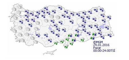 Öte yandan Meteoroloji Genel Müdürlüğü'nden yapılan uyarıya göre, Marmara'nın doğusu ve Batı Karadeniz'de cuma günü başlayacak kar yağışlarının Sakarya, Kocaeli, Düzce, Zonguldak, Bartın, Karabük, Kastamonu'nun kuzeyi ile Sinop'da gelecek haftanın başına kadar kuvvetli ve yer yer yoğun olması bekleniyor. Meydana gelebilecek olumsuzluklara karşı dikkatli ve tedbirli olunması gerekiyor.