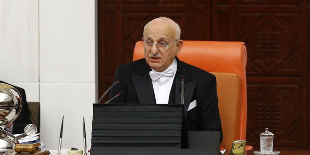 "Bu hassasiyetinin bir tezahürü olarak Anadolu'yu 'son ocak' diye tesmiye etmiş, milletimizin hürriyet ve bağımsızlık tutkusunu en bedii bir şekilde dile getirmiştir. Bu nedenle İstiklal Marşı, sadece bir şiir olmanın çok ötesinde, bir anlam ihtiva etmekte, geleceğe dair endişe, korku ve kaygıları yüreğimizden silip atan, cesaret ve metanet aşılayan, ümitlerimizi yeşerten bir coşku kaynağı, bir moral membaı olma niteliği taşımaktadır. Milli kimliğimizi yansıtan değerler manzumesini en özlü, yalın, açık ve edebi şekilde ifade eden İstiklal Marşımızın, TBMM'de kabul edilişinin 95'inci yıl dönümünü bir kez daha kutluyor, bu vesileyle, bizlere böylesine güzel bir marşı miras bırakan ilk Meclisimizin tüm üyelerini, milli mefahirimizi epik bir dille manzum bir esere dönüştürmüş bulunan merhum Akif başta olmak üzere, minnet ve şükranla anıyor, hepsine rahmetler niyaz ediyorum."