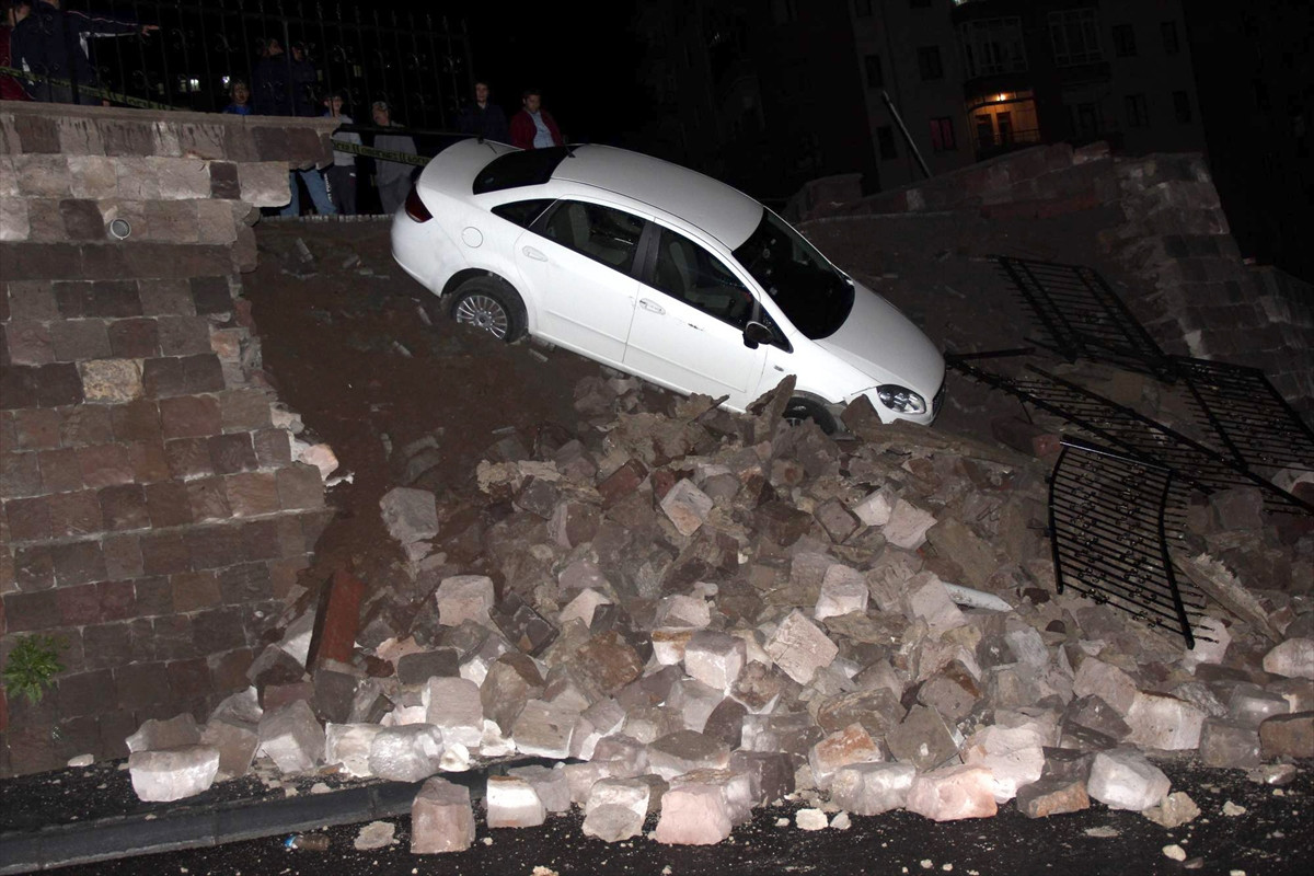 Kentte gün boyu etkili olan sağanak sonucu Talas ilçesi Anayurt Mahallesi Batuhan Sokak Erdem evlerinin istinat duvarı çöktü. Apartmanın önünde park halinde bulunan ve sahibine ulaşılamayan 34 DG 343 plakalı otomobil istinat duvarıyla birlikte yaklaşık 5 metre yükseklikten aşağı düştü.
