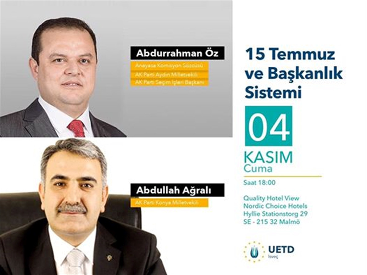 UETD İsveç Başkanı Özer Eken, AA muhabirine yaptığı açıklamada, AK Parti Konya Milletvekili Abdullah Ağralı ve AK Parti Aydın Milletvekili Abdurrahman Öz'ün katılımıyla düzenlenecek panel için "Quality Wiew Otel" ile bir ay önceden anlaşma sağladıklarını kaydetti.