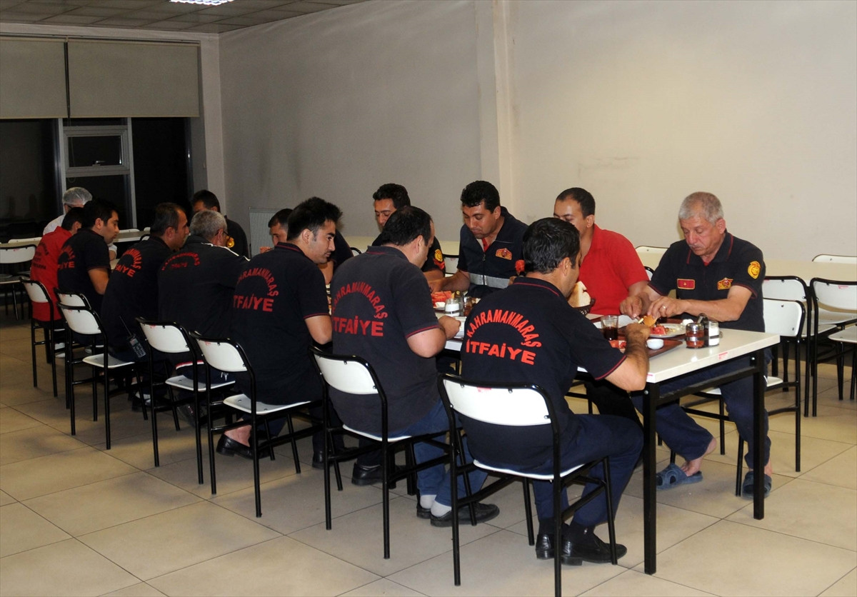 KAHRAMANMARAŞ (AA) - Kahramanmaraş Büyükşehir Belediyesi İtfaiye Daire Başkanlığı görevlileri, ilk sahurlarını nöbette yaptı.