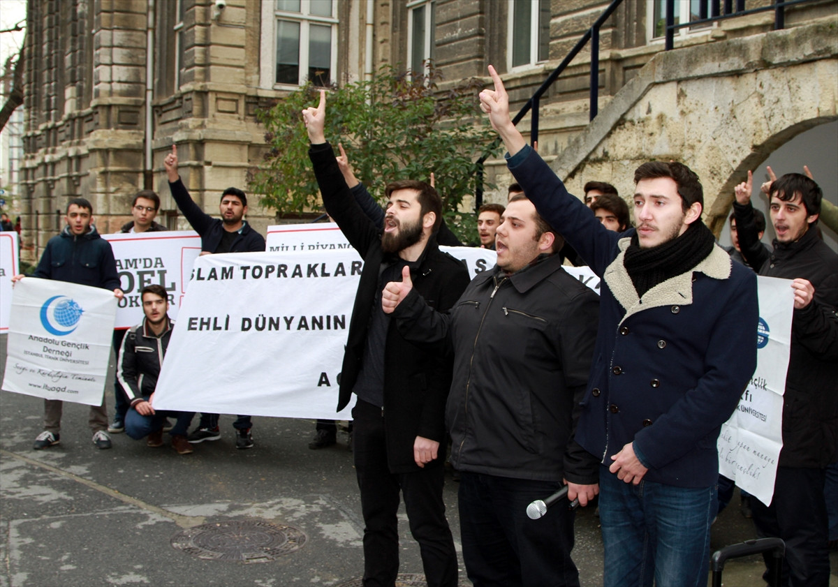 İSTANBUL (AA) - Anadolu Gençlik Derneğine (AGD) üye bir grup İstanbul Teknik Üniversitesi (İTÜ) öğrencisi, yılbaşına yönelik yapılması planlanan kutlamaları protesto etti.