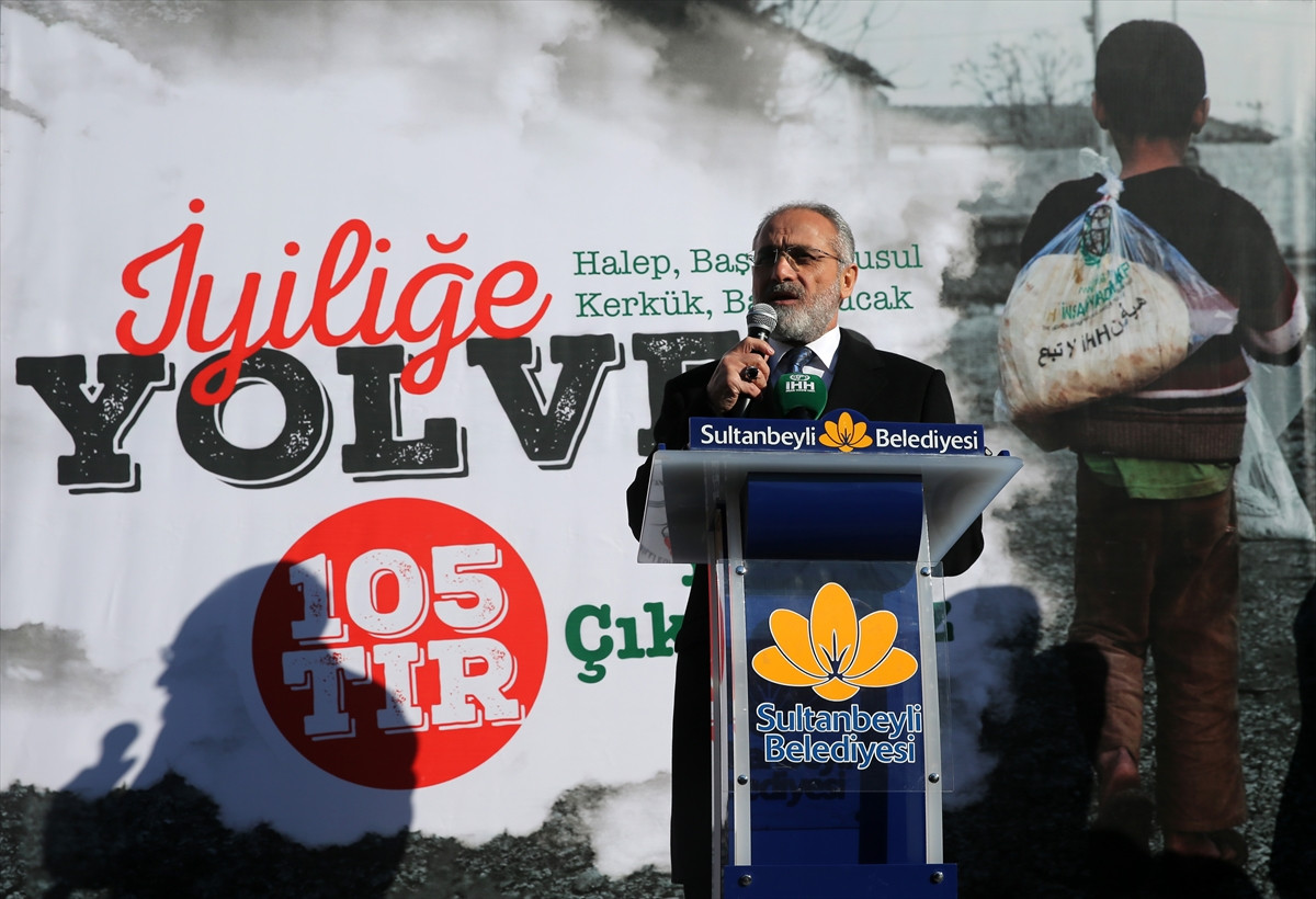 Sultanbeyli Belediyesi ve İHH İnsani Yardım Vakfı Sultanbeyli Temsilciliği iş birliğiyle yürütülen "İyiliğe Yol Ver" kampanyası kapsamında toplanan insani yardım malzemelerini Haleplilere ulaştıracak tırlar yola çıktı.