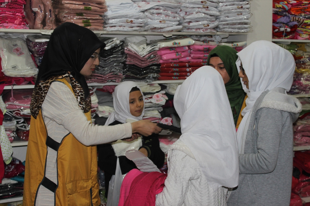 Mağazaya gelen çocuklar, beğendikleri kıyafetleri almanın mutluluğunu yaşadı.