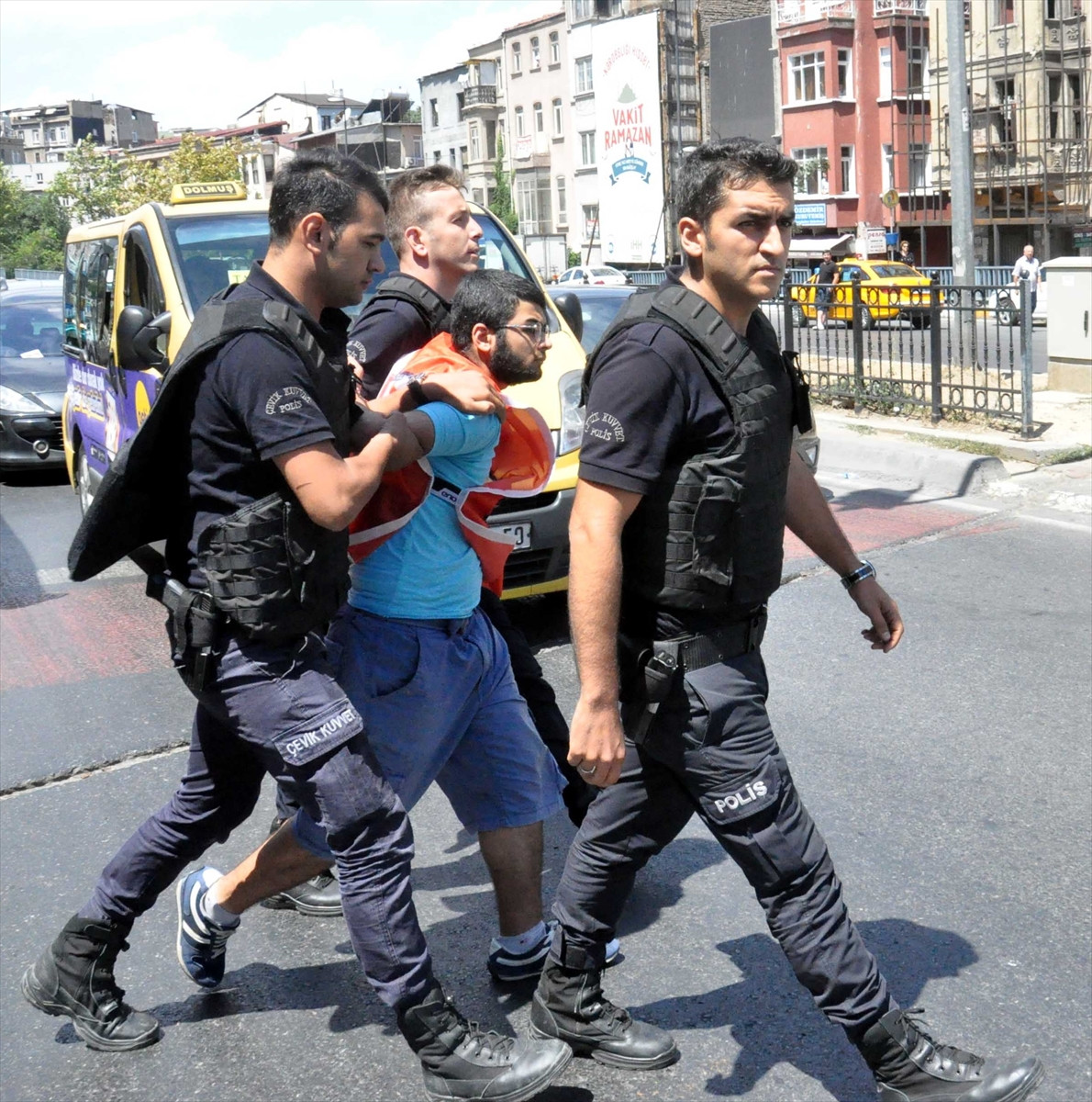İSTANBUL (AA) - Sosyalist Gençlik Dernekleri Federasyonu (SGDF) üyesi grubun, geçen yıl Suruç'ta meydana gelen terör saldırısının yıl dönümü nedeniyle gerçekleştirdiği gösteriye polis izin vermedi.