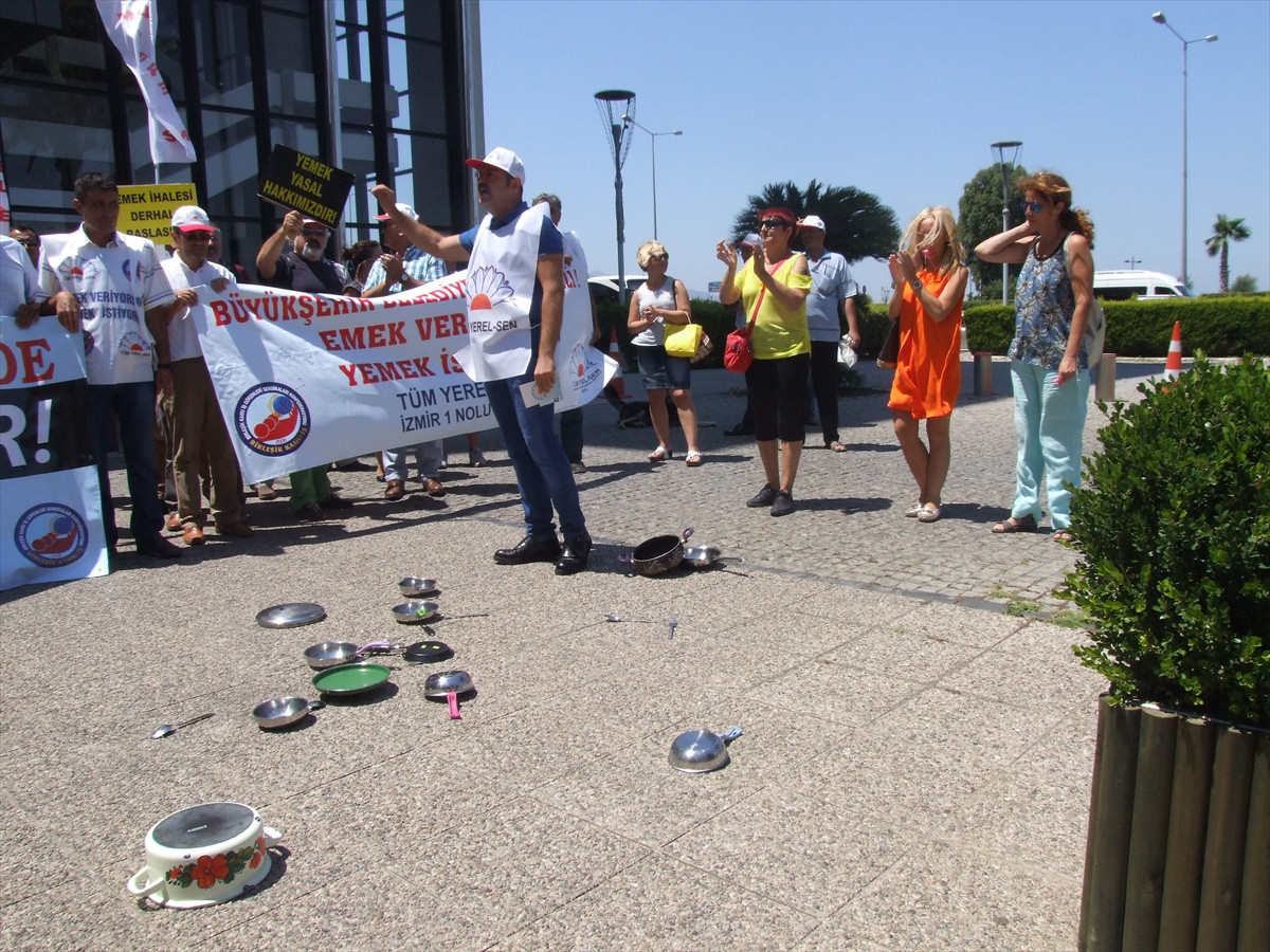 İZMİR (AA) - Tüm Yerel-Sen İzmir Şubesi üyesi memurlar, İzmir Büyükşehir Belediyesinin toplu sözleşmedeki yemek yardımını uygulamadığı gerekçesiyle tencere tavalı eylem yaptı.