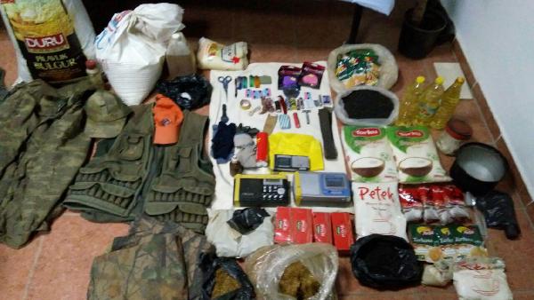 Operasyonda toprağa gömülü 3 plastik bidon içinde, 2 Kalaşnikof piyade tüfeği, 1 RPG-7 roketatar, 1 yivsiz av tüfeği, 175 fişek, 2 el bombası, 2 RPG-7 roketatar sevk fişeği, 1 el dürbünü, 25 av fişeği, 6 Kalaşnikof piyade tüfeği şarjörü, 4 hafıza kartı, 1 pusula, 1 avcı bıçağı, 25 pil, 2 uyku tulumu, 2 sırt çantası, bol miktarda yiyecek ve yaşamsal malzeme ele geçirildi. Söz konusu malzemeler incelenmek üzere kriminal laboratuvarına gönderildi.