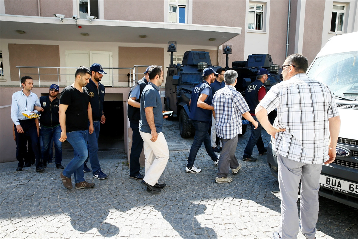 İzmir Cumhuriyet Başsavcıvekili Okan Bato'nun yürüttüğü FETÖ/PDY'nin adliye yapılanmasına yönelik soruşturma kapsamında dün İzmir, Manisa, Trabzon ve Uşak'ta gözaltına alınan zanlıların Terörle Mücadele Şubesindeki işlemleri tamamlandı. Şüphelilerden 2'si savcılıkça serbest bırakıldı, sağlık kontrolünden geçirilen 16 zanlı İzmir Adliyesine sevk edildi. Zanlıların, adliyeye zabıt katibi ve infaz koruma memuru alımı için yapılan sınav öncesinde soruları temin ettikleri ve örgüte yakın kişileri işe yerleştirdikleri, ayrıca FETÖ/PDY'ye yönelik soruşturmalar ve operasyonlarla ilgili örgüte bilgi aktardıkları öne sürülüyor. Dün, İzmir, Karşıyaka ve Menemen adliyeleri ile Aliağa Ceza İnfaz Kurumları Kampüsü ve Foça Açık Ceza İnfaz Kurumu görevlilerinin aralarında bulunduğu 15 kişi İzmir'de, 3 kişi de Manisa, Trabzon ve Uşak'ta gözaltına alınmıştı.