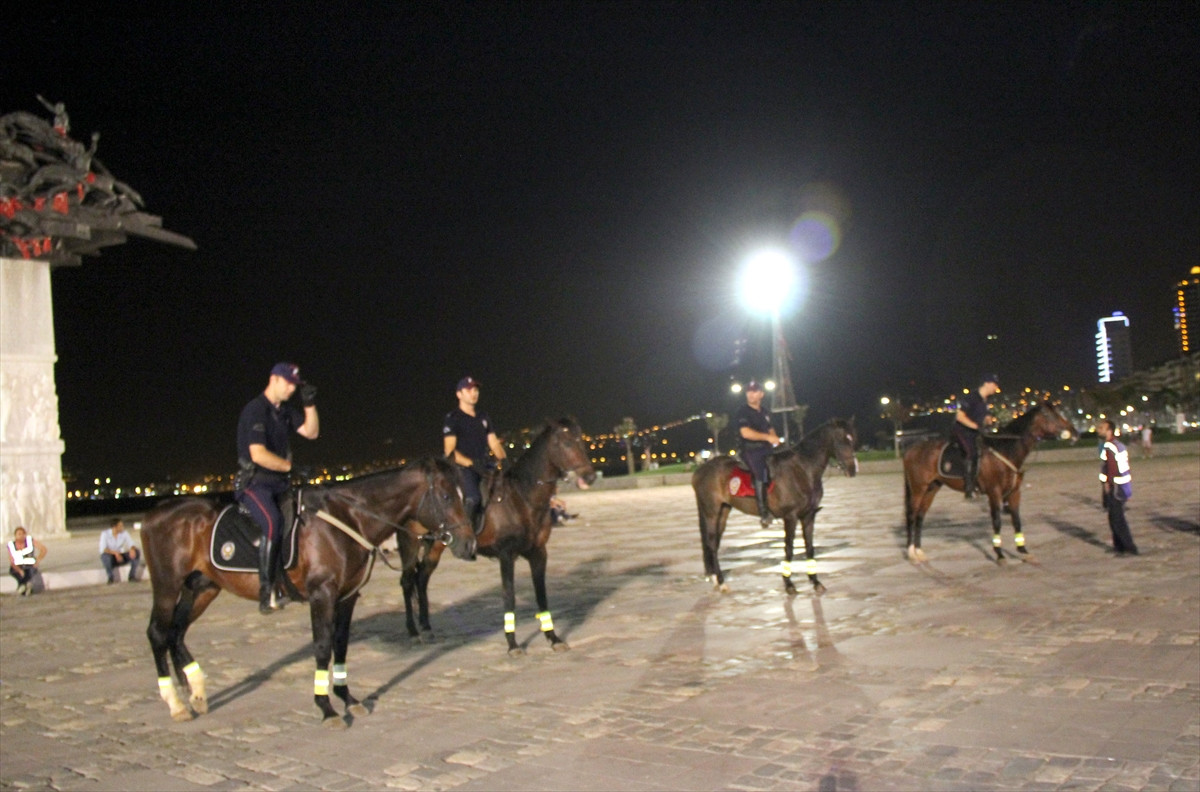 İzmir Emniyet Müdürlüğüne bağlı ekiplerce belirlenen noktalarda yapılan uygulamada, atlı birlikler ve dedektör köpeklerle desteklenen 660 polis, belirlenen noktalarda asayiş uygulaması yaptı.