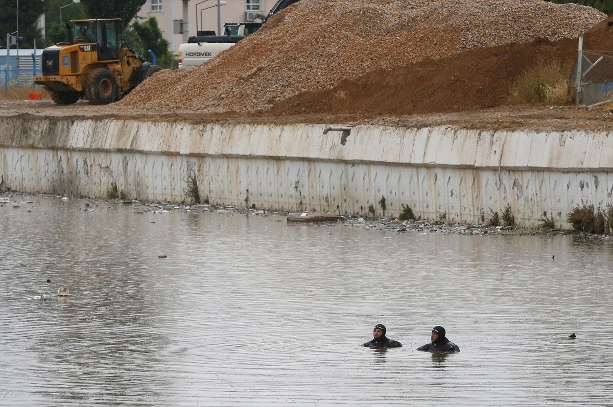 Dalgıç polisler ve itfaiye ekipleri, kanala bot indirip arama çalışması başlattı. Yağmur nedeniyle akıntının da çoğaldığı derede yapılan aramada, çamura saplanmış bir erkek cesedi bulundu.