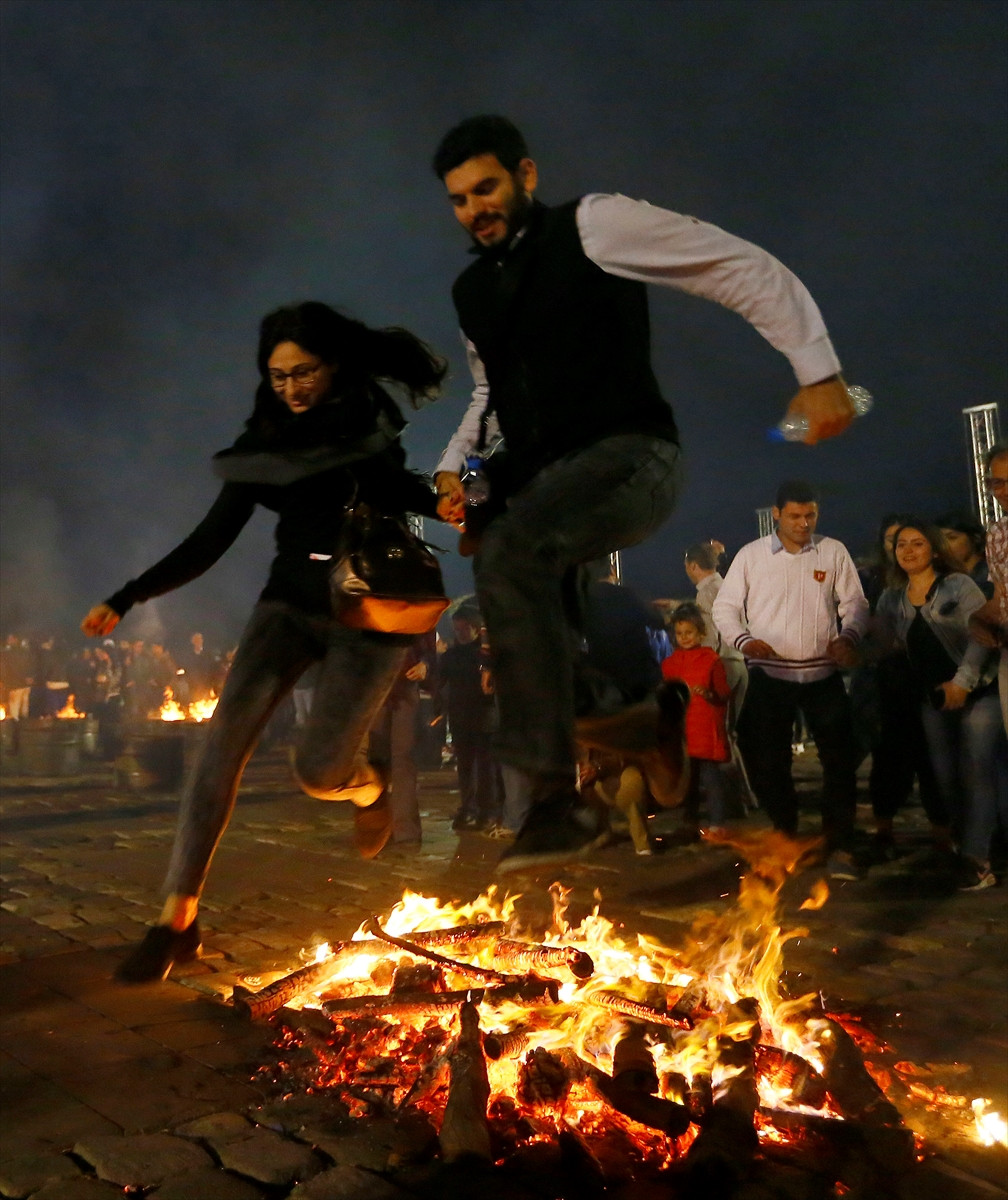 Etkinliğe katılanların bir bölümü daha sonra Gündoğdu Meydanı'nda ateş yanan varillerin üstünden atlayarak Hıdırellez'i kutladı.