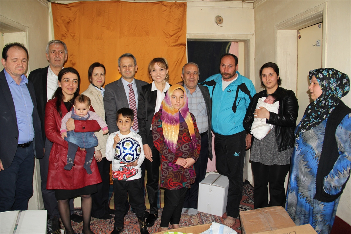 Suriyeli Hasan'ın darbedildiği gün dünyaya gelen kardeşi Rava bebeğe de yeni doğan bakım ve giyim seti armağan verildi.