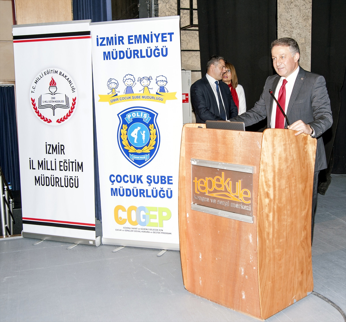 Toplantıya, İzmir Vali Yardımcısı Mustafa Harputlu, İl Milli Eğitim Müdürü Ömer Yahşi, Emniyet Müdürleri, okul müdürleri, öğretmenler ve öğrenciler katıldı.