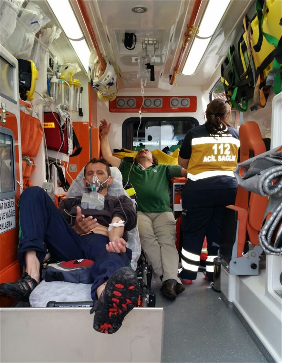 İlk müdahalenin yapıldığı balıkçılar, karada sağlık ekiplerine teslim edildi.
