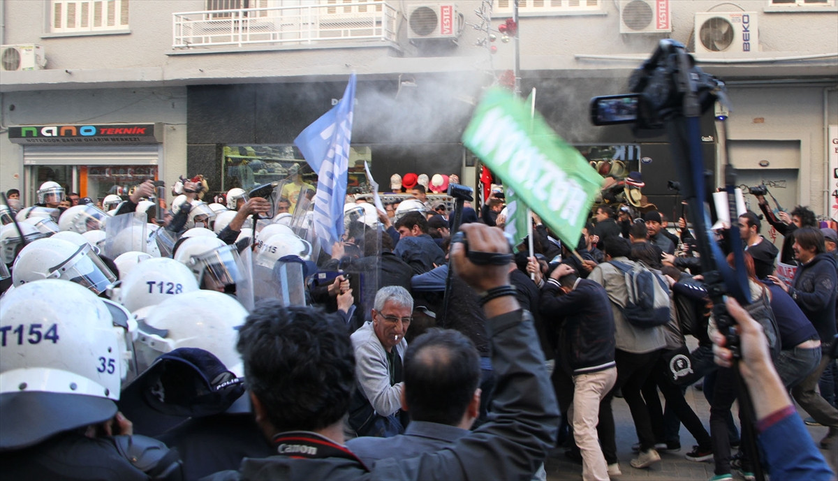 TBMM Başkanı Kahraman'ın laiklik konusundaki açıklamalarını protesto için "Birleşik Haziran Hareketi"nin çağrısıyla Alsancak semtindeki ÖSYM Hizmet Binasının önünde toplanan gruptakiler, Kıbrıs Şehitleri Caddesi'ne doğru yürüyüşe geçmek istedi.