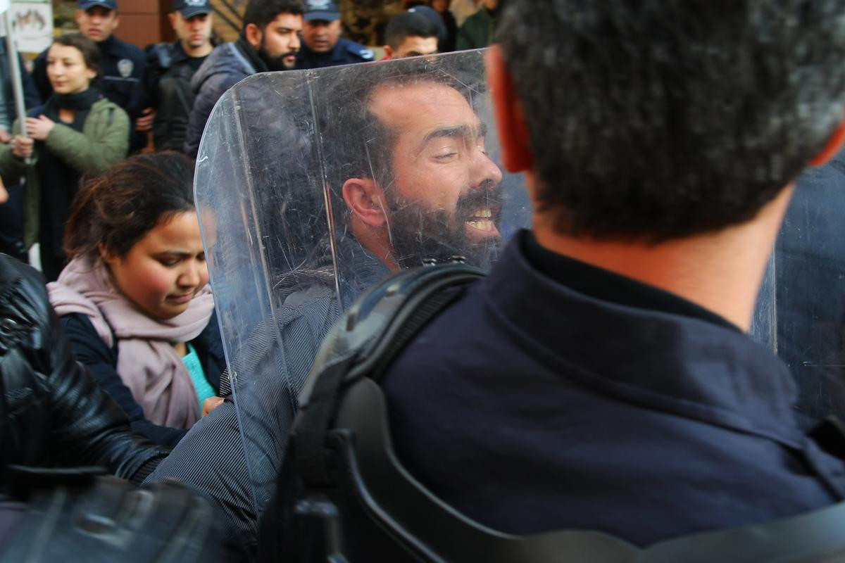 Slogan atıp, pankart açan gruptakiler, eylemin izinsiz olduğunu belirten polisin uyarısına rağmen dağılmamakta ısrar edince 4'ü kadın 14 kişi, gözaltına alındı.