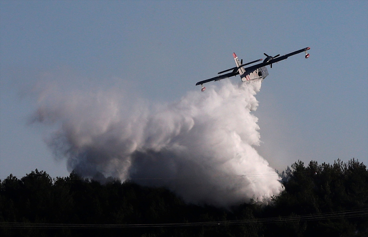 Rüzgarın etkisiyle büyüyen yangının ormanlık alana sıçramaması için 9 helikopter, 1 yangın söndürme uçağı, 20 arazöz ve çok sayıda söndürme personeli çalışma yürütüyor.
