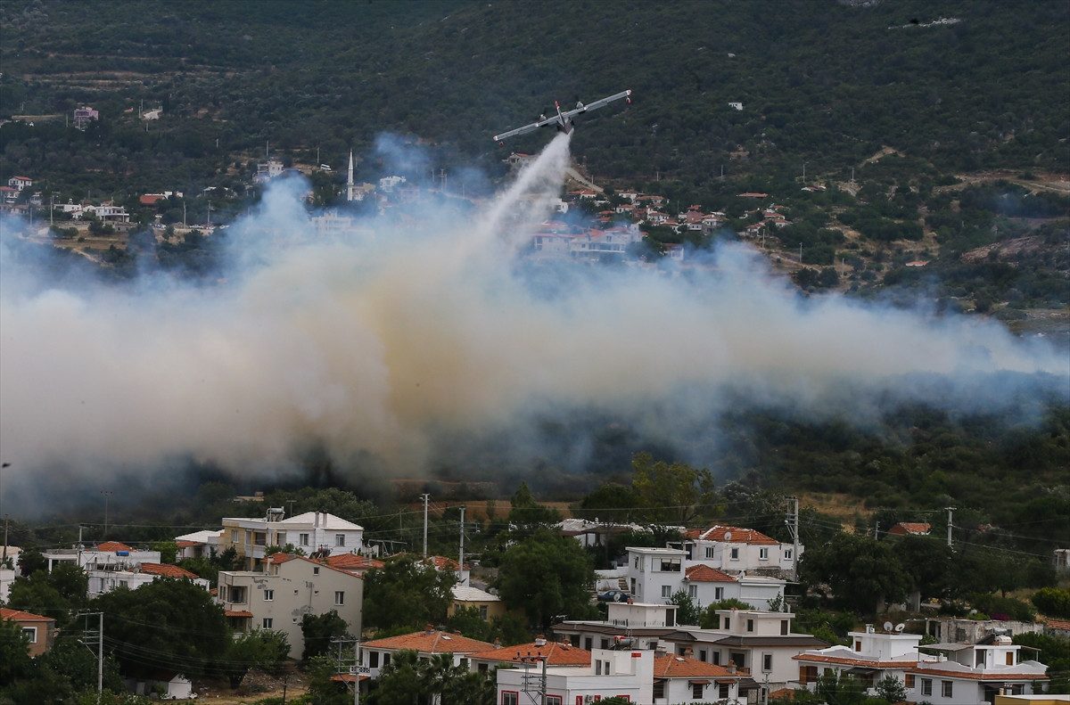 İZMİR (AA) - Karaburun ilçesinde makilik ve çalılık alanda başlayan yangın, rüzgarın etkisiyle yayılarak devam ediyor.