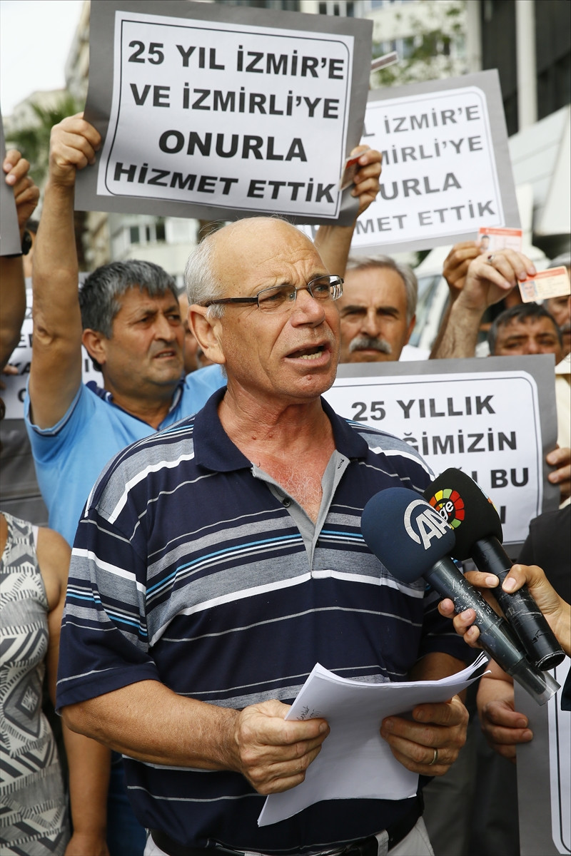 İZMİR (AA) - İzmir Büyükşehir Belediyesinin çeşitli birimlerinden emeklilerin ulaşım hizmetlerinden ücretsiz faydalanmasını sağlayan kartların iptali protesto edildi.