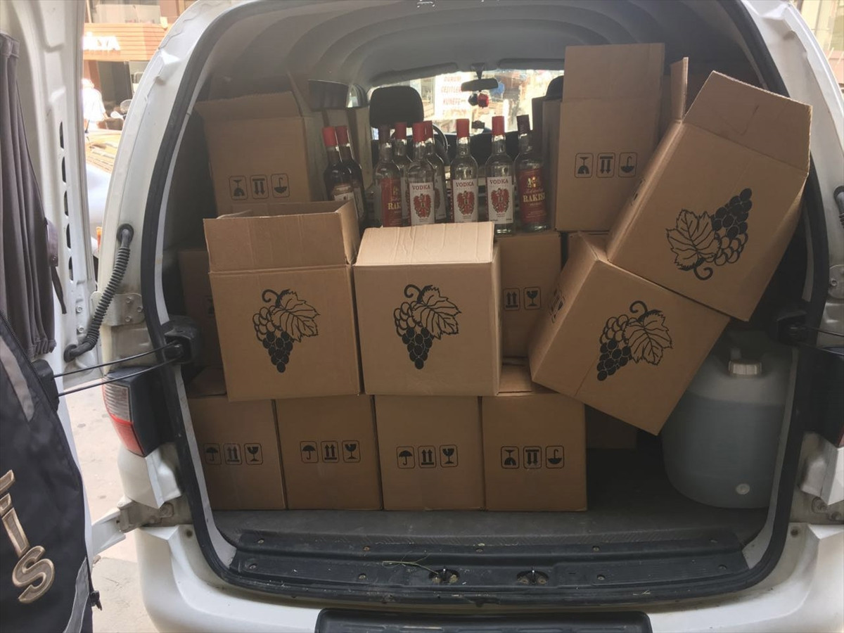 Kazım Dirik Mahallesi'ndeki aracın bagajında yapılan aramada farklı türde 972 şişe sahte içki ile bidonlara doldurulmuş 30 litre sahte rakı bulundu.