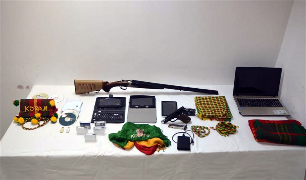 Zanlıların adreslerinde gerçekleştirilen aramalarda, 1 ruhsatsız av tüfeği, 1 kurusıkı tabanca, 4 bilgisayar, 1 fotoğraf makinesi, 5 kamera kayıt kaseti, 23 CD, 1 hafıza kartı, 1 harici disk ile terör örgütünü simgeleyen bez parçaları ele geçirildi.