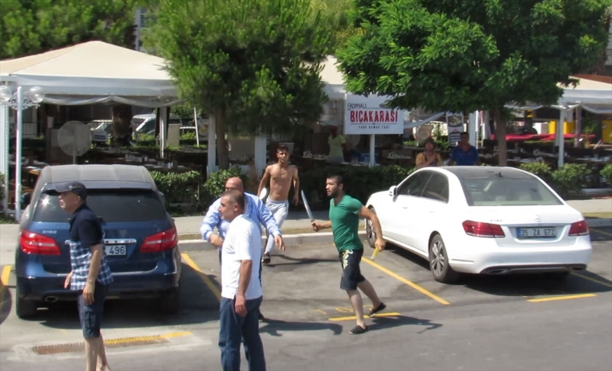 Olay anında zabıta kamerasına yansıyan görüntülere göre, küfür ve hakaretlerini kısa sürede fiili saldırıya dönüştüren işletmeci, yanındaki 10 kişilik gruba saldırı talimatı verdi. Atılan taş, savrulan pala ve sopaların hedefi haline gelen zabıta memurlarından 5'i, yaralı halde Alsancak Devlet Hastanesine kaldırıldı.