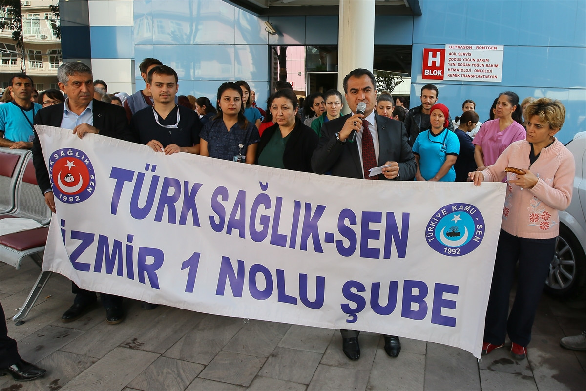 İZMİR (AA) - Türk Sağlık-Sen İzmir 1 Nolu Şube üyeleri, dün Dr. Behçet Uz Çocuk Hastanesi ile Bozyaka Eğitim ve Araştırma Hastanesindeki bazı sağlık personeli ve hasta yakınlarının gıda zehirlenmesi şüphesiyle hastanelerde tedavi altına alınması nedeniyle basın açıklaması yaptı.