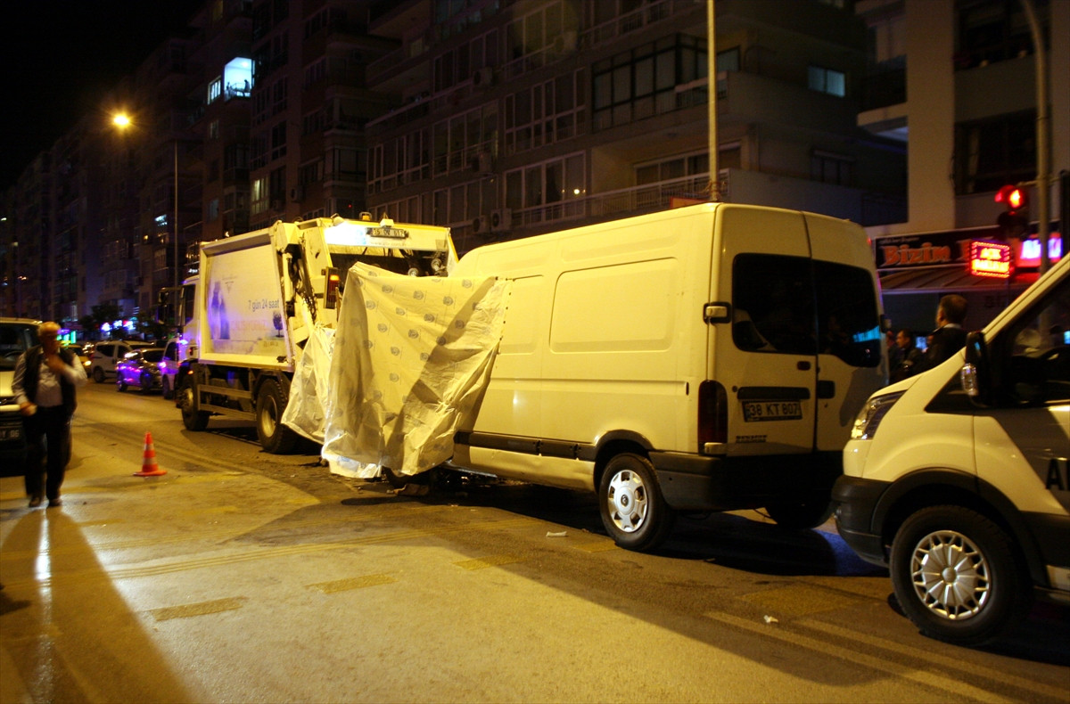 İzmir Karabağlar Belediyesine ait Cahit Uğur'un (56) kullandığı 35 DU 612 plakalı çöp kamyonuna, İnönü Caddesi İlahiyat Fakültesi Kavşağı yakınında çöp konteynırını boşaltığı sırada, Ünal Dengiz (27) yönetimindeki 38 KT 807 minibüs arkadan çarptı. Ççöpü boşaltırken minibüs ile çöp kamyonu arasında sıkışan temizlik işçisi Cüneyt Bürke (43) olay yerinde hayatını kaybetti, minibüs sürücüsü Dengiz ise ağır yaralandı. Sağlık ekiplerince Katip Çelebi Üniversitesi Atatürk Eğitim ve Araştırma Hastanesine kaldırılan Dengiz müdahaleye rağmen kurtarılamadı. Kazayı yara alamadan atlatan çöp kamyonundaki mesai arkadaşları Uğur ve Halil Yenilmez ise fenalaştı. Kaza nedeniyle kapanan trafik akışı araçların kaldırılmasının ardından tekrar sağlandı. Soruşturma sürdürülüyor.