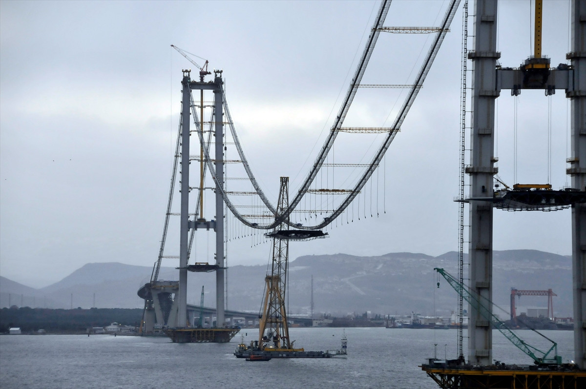 Samanlı Tüneli'nde gazetecilere açıklama yapan Bakan Yıldırım, İzmit Körfez Geçiş Köprüsü'nü dünyanın en büyük dördüncü köprüsü olarak nitelendirerek, kullanılan tel halatların 80 bin kilometre uzunluğunda ve uç uca konulduğunda dünyanın çevresinin iki katından fazla olduğunu belirtti.