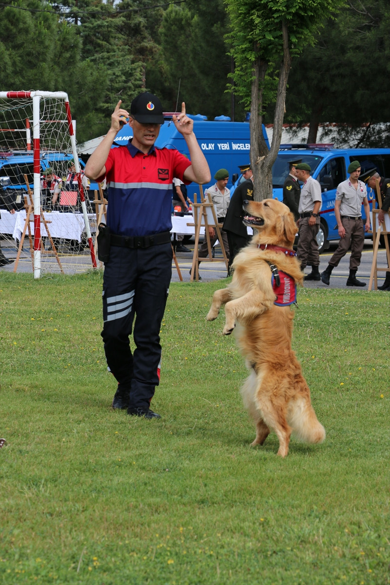 Törende, narkotik köpeği "Evlat" ile arama kurtarma köpeği "Bekar" eğiticileri eşliğinde gösteri sundu.