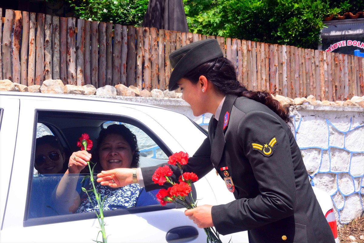 MUĞLA (AA) - Muğla İl Jandarma Komutanlığına bağlı ekipler, sorumluluk alanlarındaki kontrol noktalarında kadınlara gül ve karanfil vererek, Anneler Günü'nü kutladı.