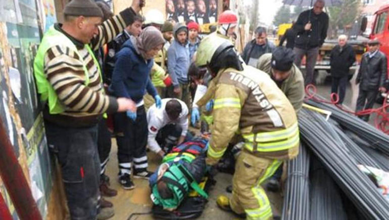 Kadıköy 19 Mayıs Mahallesi'nde, TIR'la inşaata getirilen demirler yoldan geçen bir kişinin üzerine devrildi.