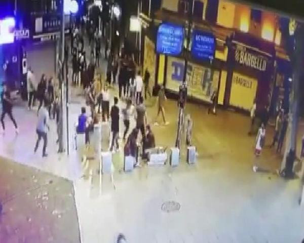 Kadıköy'de korku dolu anlara neden olan saldırının güvenlik kamerası görüntüleri ortaya çıktı. Görüntülerde bıçaklı saldırgan, tartıştığı kişilere saldırırken çevrede korku dolu anlar yaşanıyor. Eli bıçaklı saldırganı görenler kaçışırken saldırıya uğrayan kişi aldığı bıçak darbesiyle yere yığılıyor.