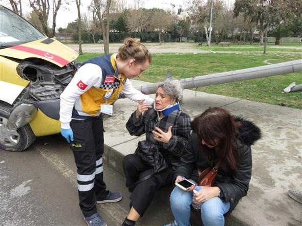 Kadıköy sahil yolunda lastiği patyan dolmuş kontrolden çıkarak elektrik direğine çarptı. Dolmuştaki 3 kişi yaralandı.