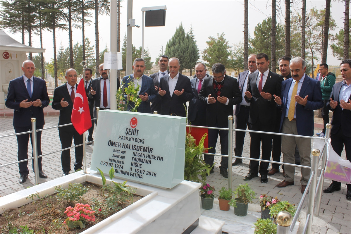 AK Parti Niğde Milletvekili Erdoğan Özegen ve bazı sendika başkanları ile Bor ilçesindeki Çukurkuyu belde mezarlığına gelen Atalay, Fetullahçı Terör Örgütü'nün darbe girişimi sırasında Özel Kuvvetler Komutanlığında darbeci generali vurduktan sonra şehit edilen Halisdemir'in kabri başında dua ederek, üzüntülerini dile getirdi.