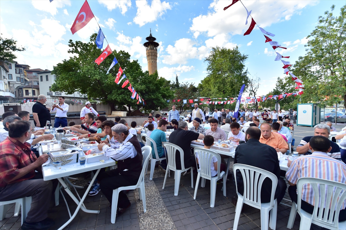 Merkez Dulkadiroğlu Belediyesince bu yıl üçüncü kez düzenlenen uygulama kapsamında vatandaşlar, tarihi Ulu Cami'nin avlusuna kurulan kahvaltı sofrasında bayram namazının ardından bir araya geldi.