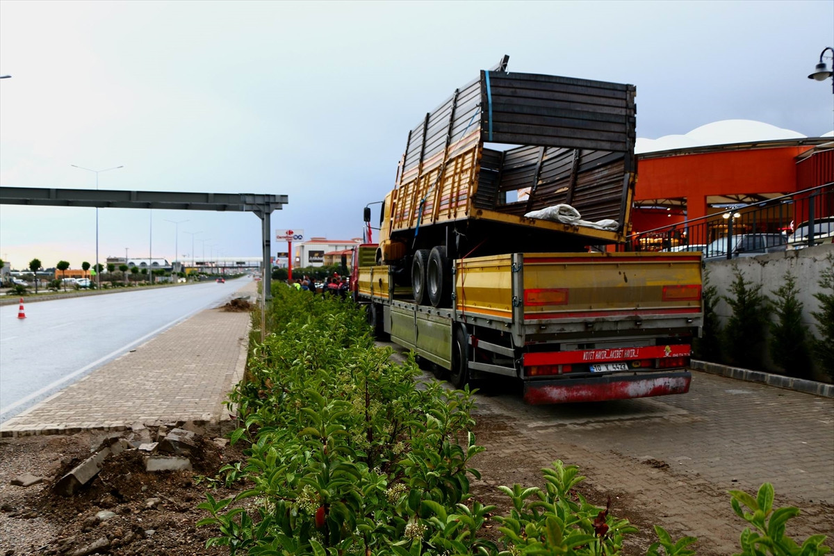 Çarpmanın etkisiyle üst geçit hasar görürken, olay yerine gelen polis ve jandarma ekipleri, yolun tek şeridini kapatarak önlem aldı.