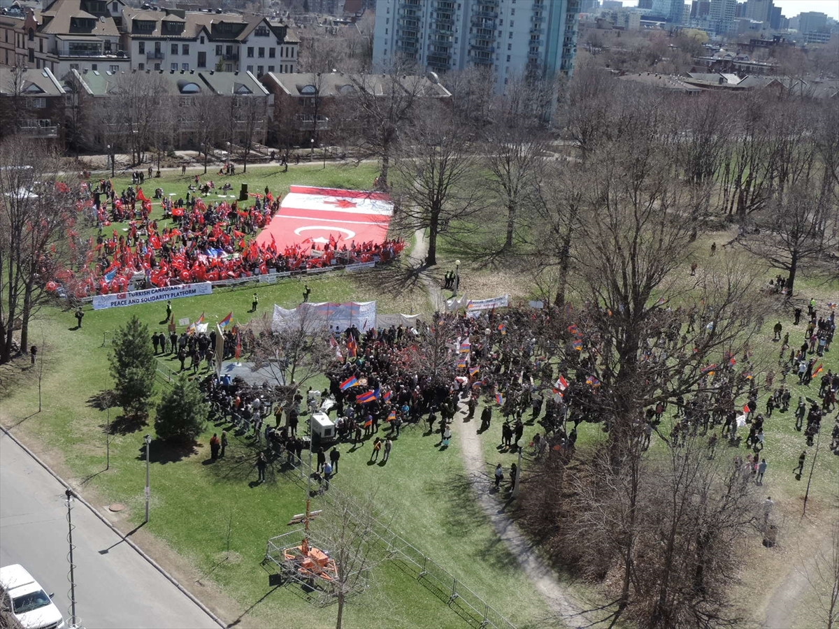 Türk sivil toplum kuruluşlarınca Kanada'nın başkenti Ottowa'da, sözde Ermeni soykırımı iddialarına karşı "24 Nisan Barış ve Dayanışma Yürüyüşü" düzenlendi. Ülke genelindeki Türk sivil toplum kuruluşlarının birlikteliğiyle oluşan Kanadalı Türkler Barış ve Dayanışma Platformu tarafından düzenlenen 24 Nisan Barış ve Dayanışma Yürüyüşü, Şehit Albay Atilla Altıkat Anıtı önünden başladı. Ermeni terör örgütü ASALA militanlarınca 1982 yılında Ottawa’da şehit edilen Askeri Ataşe Albay Atilla Altıkat anısına yapılan anıta çelenk koyan gruptakiler, şehitlerin ruhuna Fatiha okuduktan sonra Kanada Federal Parlamento binası önüne geldi. Burada toplanan Ermenilerin gösterilerine karşı, tekbir getiren, marşlar ve türküler söyleyen gruptakiler, daha sonra Türkiye’nin Ottawa Büyükelçiliği’ne yürüdü. Binlerce Türk, güzergah boyunca dev Türk ve Kanada bayrakları ile Ermeni yalanlarına ilişkin pankartlar taşıdı. Yürüyüşe Ottawa, Toronto, Montreal, Hamilton, Oakville, Mississauga ve Burlington şehirlerinde yaşayan Türklerin yanı sıra Suriye, Mısır, Filistin ve diğer Müslüman ülke kökenli Kanadalılar da destek verdi. Polis geniş önlem aldı Ottawa’daki gösteri ve yürüyüşler boyunca, yerel polis ile sivil federal güvenlik güçleri, Türkler ile Ermeni göstericileri birbirinden uzak tutmak için geniş önlem aldı. İki grup arasına bariyer kuran Ottawa polisi ile Kanada Kraliyet Atlı Polisi RCMP ekipleri, Türkiye Büyükelçiliği binası etrafında da tedbir aldı.. PKK, Ermenilere destek verdi Terör örgütü PKK yandaşları, Ottawa’da sabah saatlerinden itibaren Federal Parlamento binası önünde toplanan Ermeni göstericilere destek verdi. PKK’nın, Kanada Devleti’nin terörist organizasyonlar listesinde yer almasına ve ülkede terör örgütü propagandasının kanunla yasaklanmasına rağmen, polis bu göstericilere müdahale etmedi. Akşam saatlerine dek süren gösteriler, olaysız şekilde sona erdi.