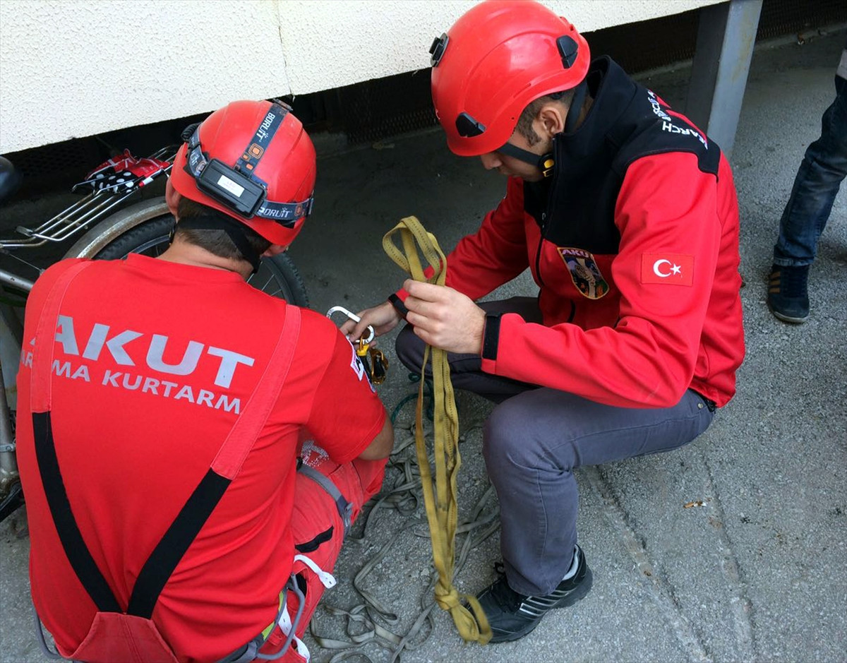 Bunun üzerine olay yerine sevk edilen AKUT Eskişehir ekibi, yaklaşık 4 metrelik yükseklikten düşen kedi yavrusunu ip teknikleri kullanarak bulunduğu yerden çıkardı.