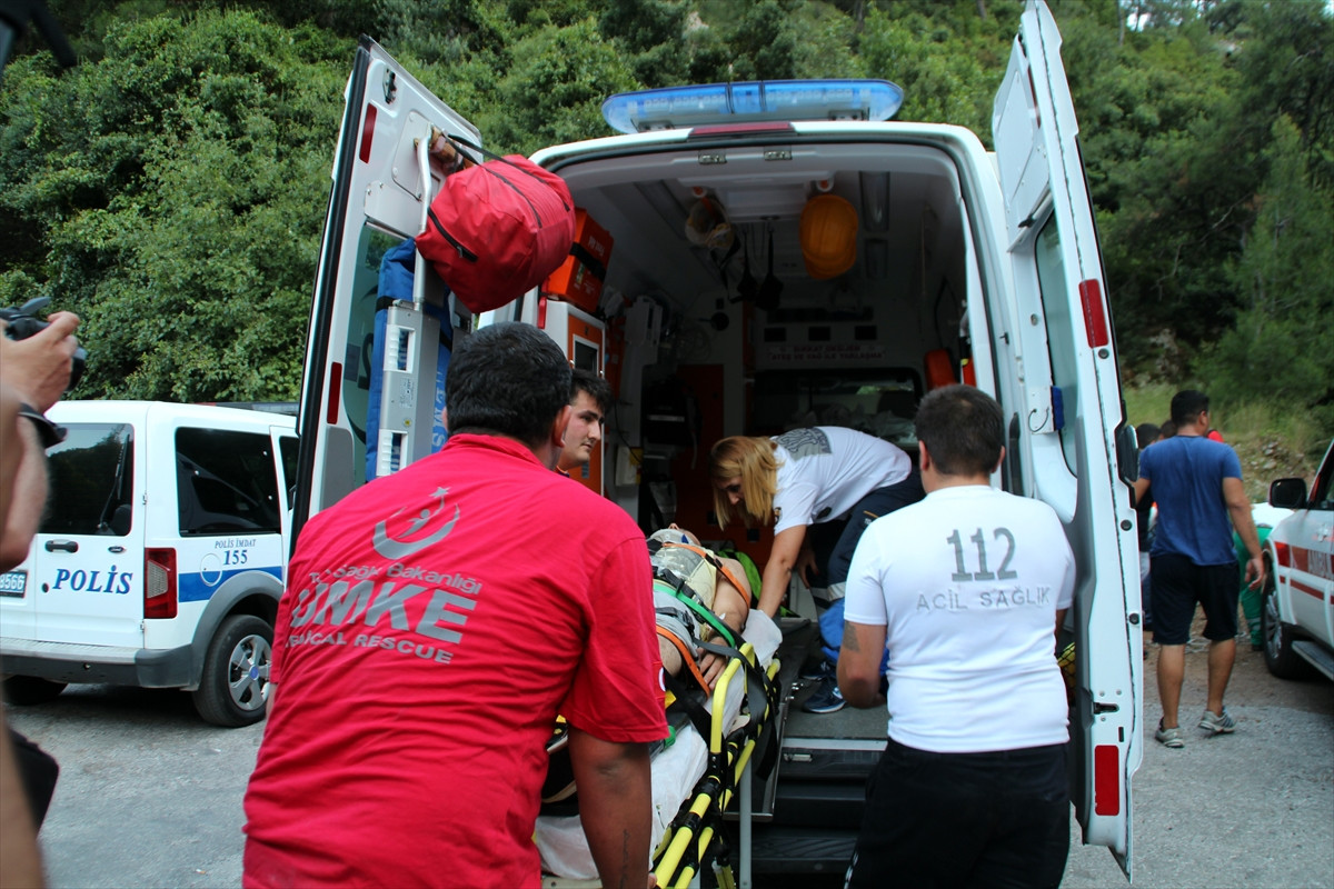 Muğla Büyükşehir Belediyesi itfaiye ekipleri, Marmaris AKUT birimi, UMKE ekipleri ile yaralıyı kanyondan çıkararak sarp kayalıklardan ambulansa kadar taşıdı.