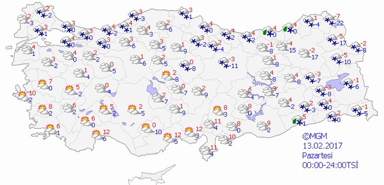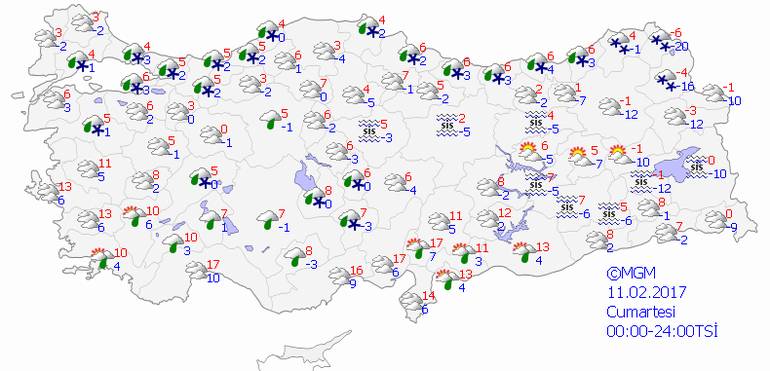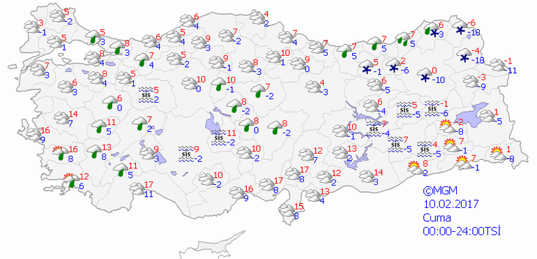 Meteoroloji Genel Müdürlüğünden yapılan son değerlendirmelere göre, ülke genelinin parçalı ve çok bulutlu, Marmara'nın kuzeyi, Güney ve İç Ege, Doğu Karadeniz kıyıları, Burdur, Antalya'nın batısı, Kırıkkale, Yozgat, Kırşehir, Kayseri, Erzurum, Kars, Ardahan, Ordu ve Samsun'un doğu kesimlerinin yağışlı geçeceği tahmin ediliyor. Yağışların, Doğu Anadolu'nun kuzeydoğusunda hafif kar, yağış alan diğer yerlerde aralıklı hafif yağmur ve sağanak şeklinde olması bekleniyor.