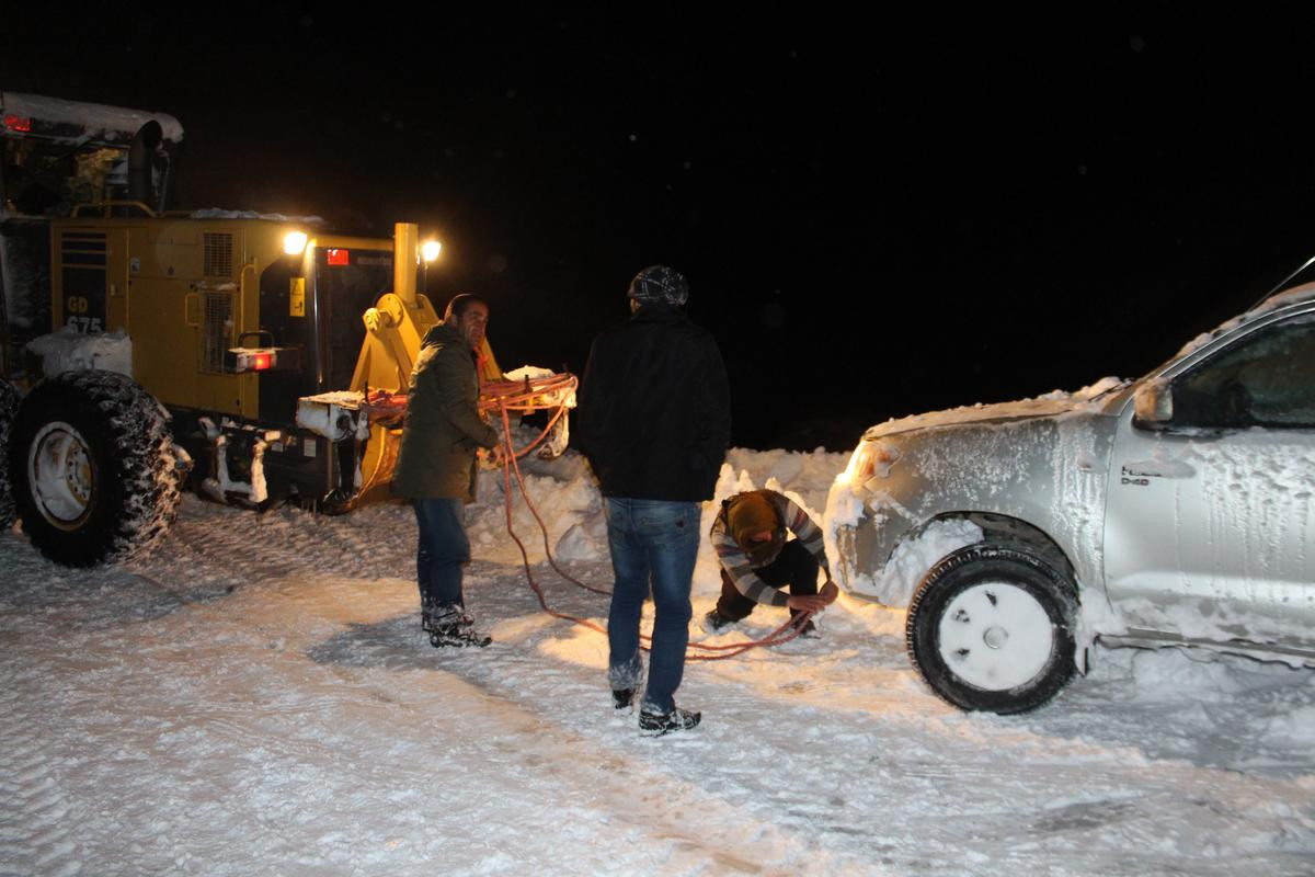Öte yandan karla mücadele çalışmalarını sürüdüren ekipler, köy yolunda mahsur kalan 2 araçtaki 8 vatandaşı da kurtararak köye ulaşmalarını sağladı.
