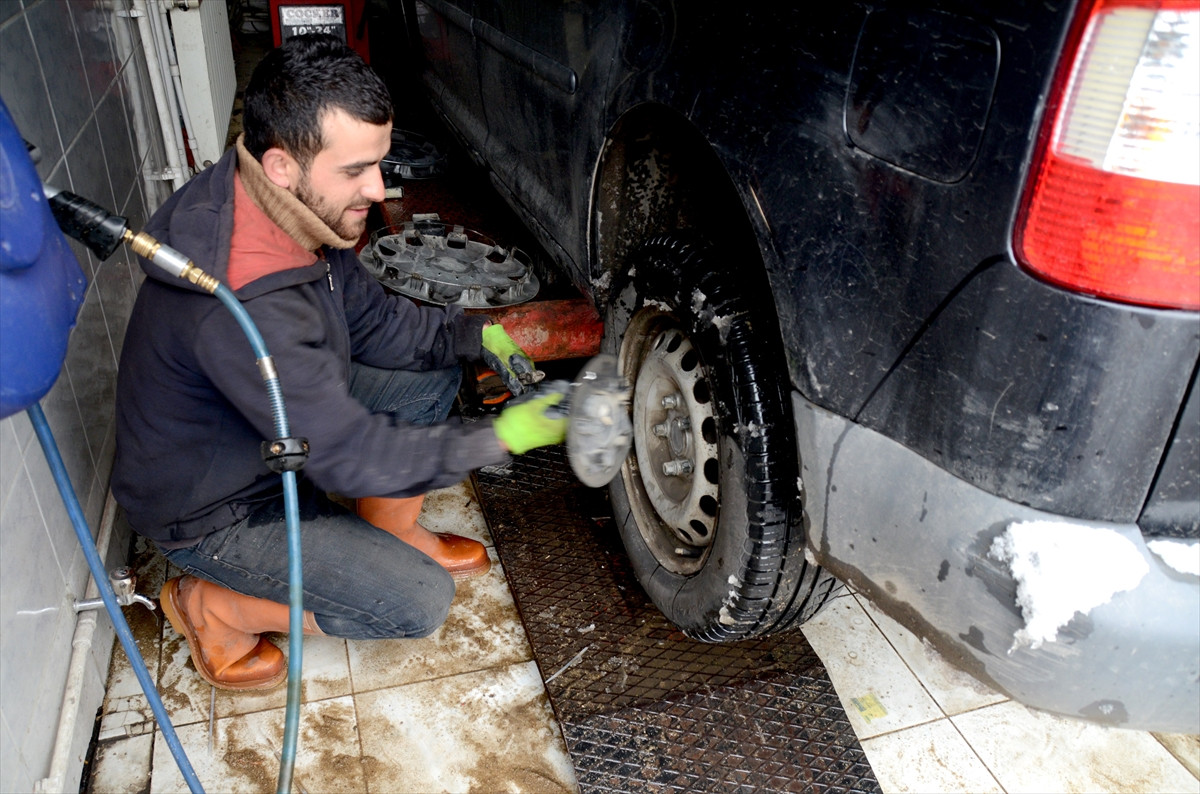 Erken saatlerde karla kaplanan yollarda kış lastiği bulunmayan araçlarıyla güçlükle ilerleyen birçok sürücü, lastik satan işyerlerinde yoğunluğa neden oldu.
