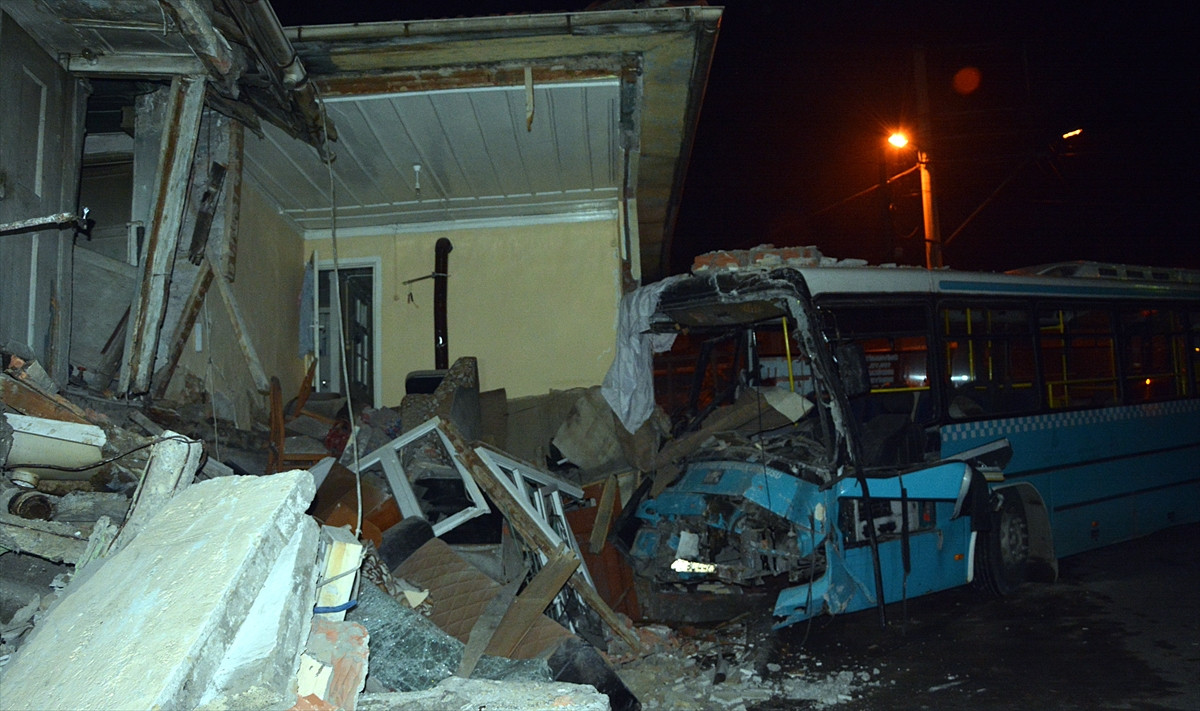 Adatepe-Kayabaşı mahalleleri arasında sefer yapan Özkan Bozmaoğlu (25) yönetimindeki 78 BL 447 plakalı özel halk otobüsü, Kayabaşı Mahallesi Hacı Alay Caddesi'nde henüz belirlenemeyen nedenle kontrolden çıkarak yol kenarında bulunan Abdullah Mangaloğlu'na ait 2 katlı eve girdi.